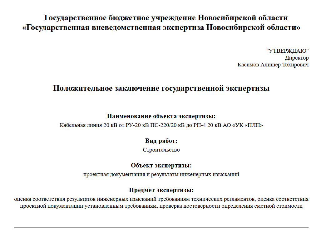 Очередное положительное заключение в нашей копилочке - на этот раз по объекту «Кабельная линия 20 кВ от РУ-20 кВ ПС-220/20 кВ до РП-4 20 кВ АО «УК «ПЛП». Гордимся нашими специалистами и благодарим за слаженную работу.